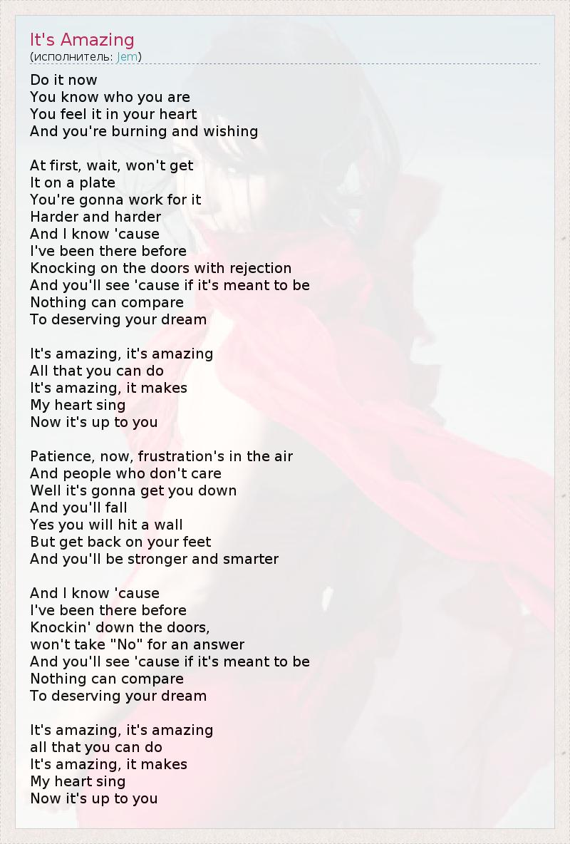 А как ты думаешь, о чем песня "It's Amazing" ?