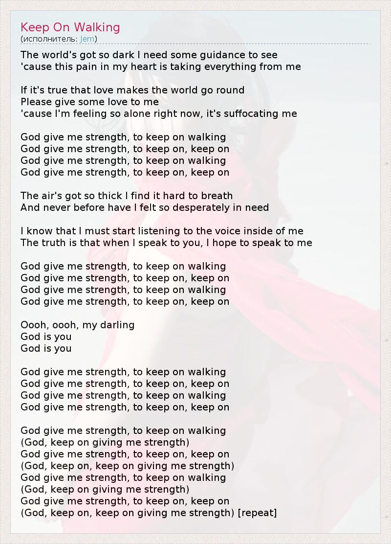 God give me strength, to keep on walking