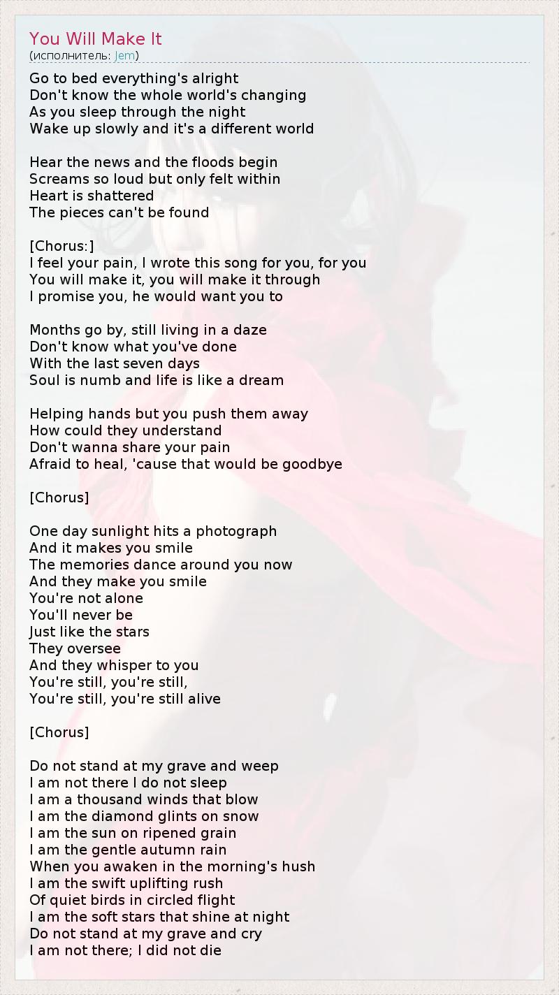 А как ты думаешь, о чем песня "You Will Make It" ?