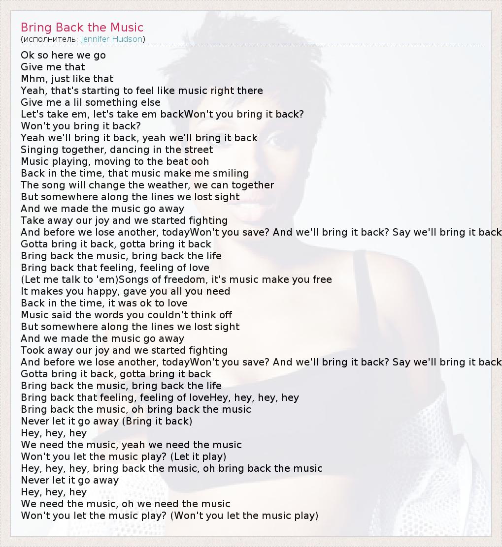 А как ты думаешь, о чем песня "Bring Back the Music" ?