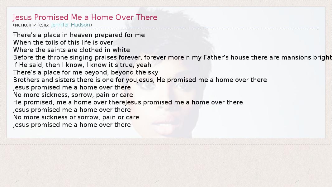 ГлавнаяИсполнителиJennifer HudsonJesus Promised Me a Home Over There