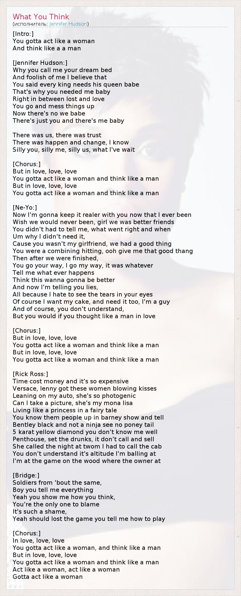Ты должна вести себя, как женщина, и мыслить, как мужчина.