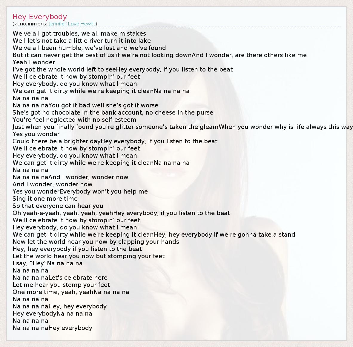 А как ты думаешь, о чем песня "Hey Everybody" ?