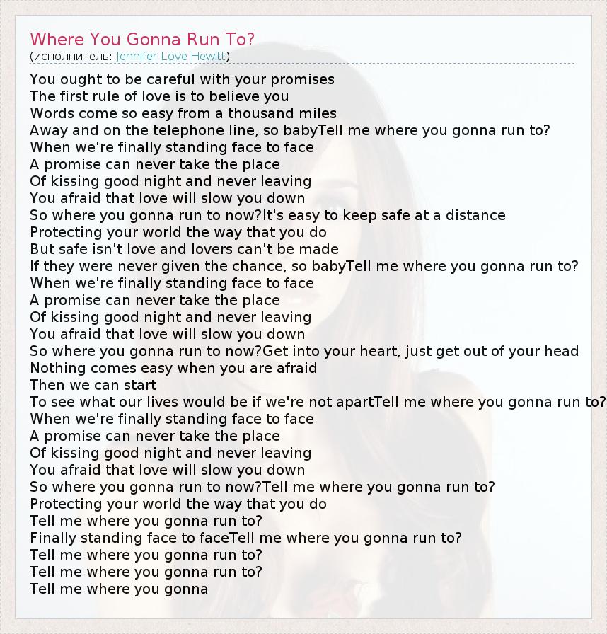 А как ты думаешь, о чем песня "Where You Gonna Run To?" ?