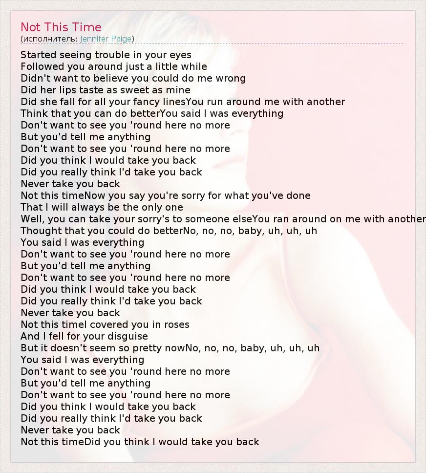 А как ты думаешь, о чем песня "Not This Time" ?