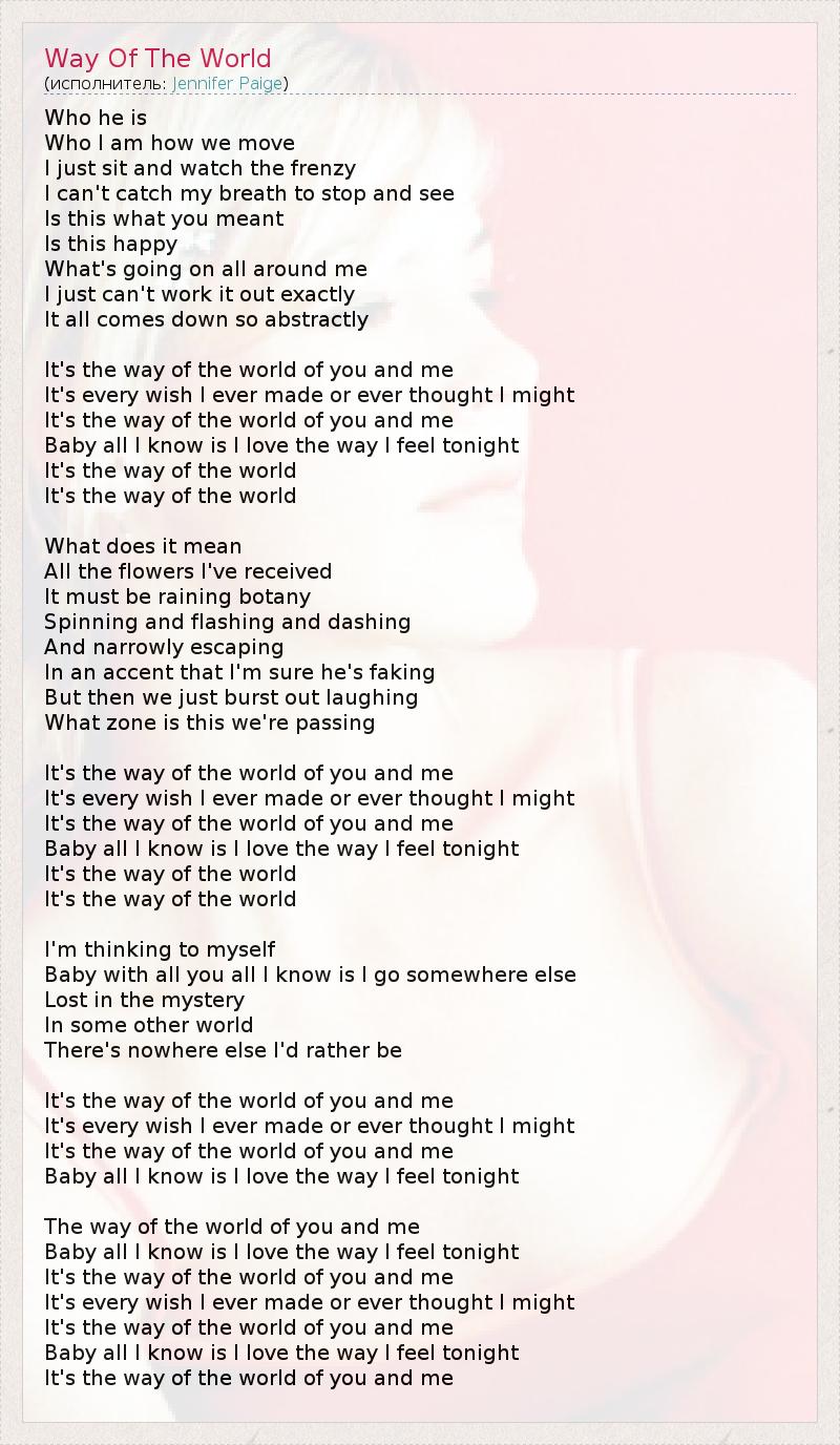А как ты думаешь, о чем песня "Way Of The World" ?