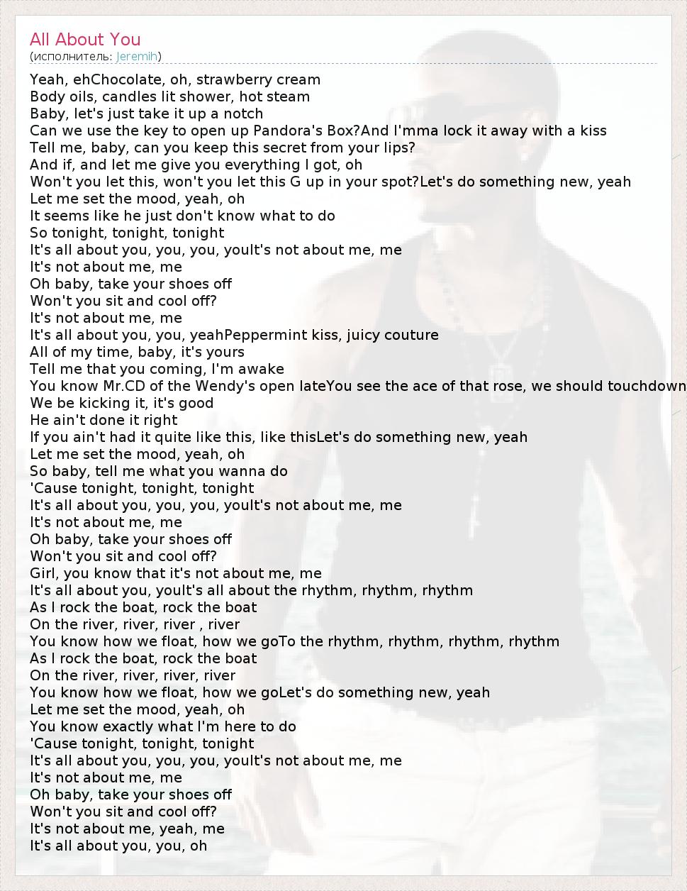 It's all about you, youIt's all about the rhythm, rhythm, rhythm