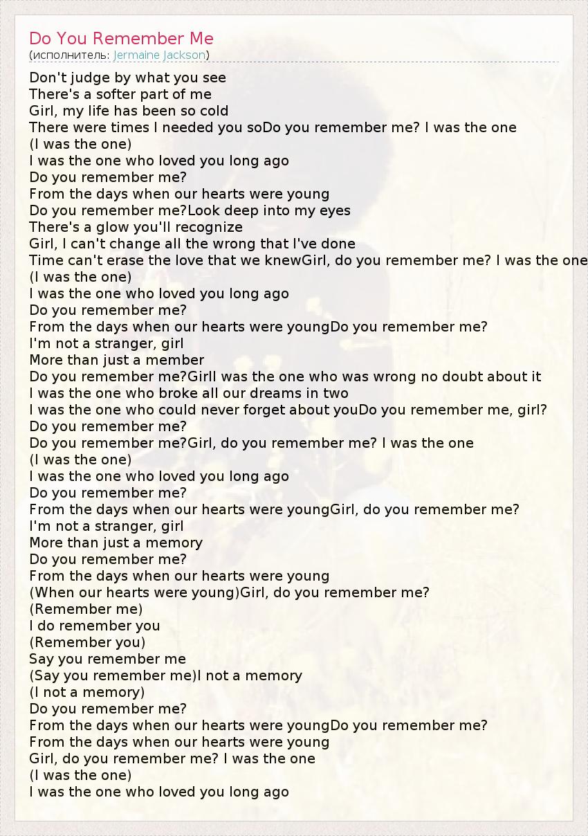 Do you remember me?Girl, do you remember me? I was the one