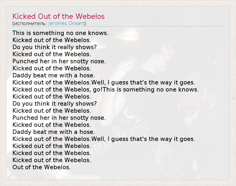 ГлавнаяИсполнителиJeromes DreamKicked Out of the Webelos