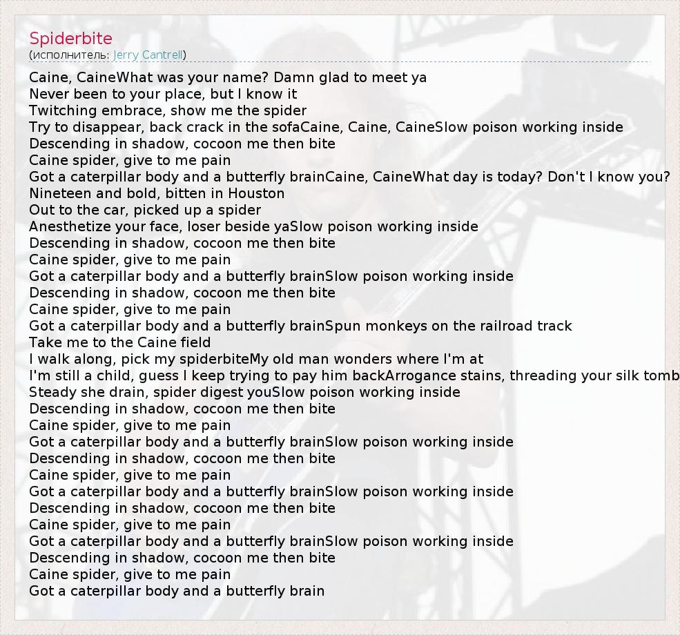 А как ты думаешь, о чем песня "Spiderbite" ?