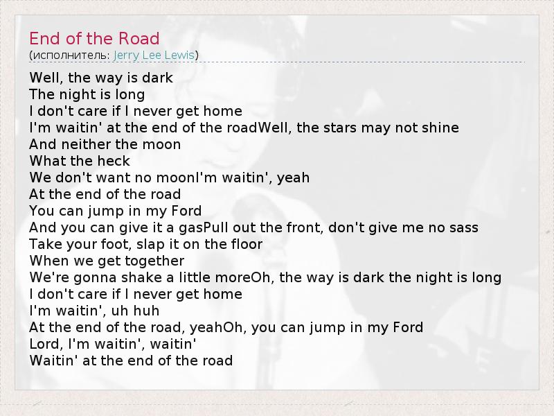 I'm waitin' at the end of the roadWell, the stars may not shine