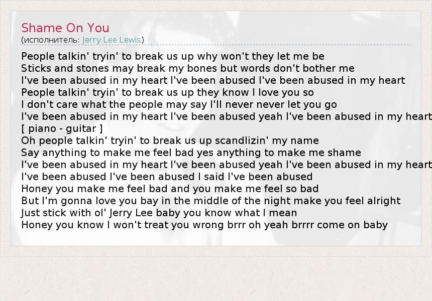 А как ты думаешь, о чем песня "Shame On You" ?