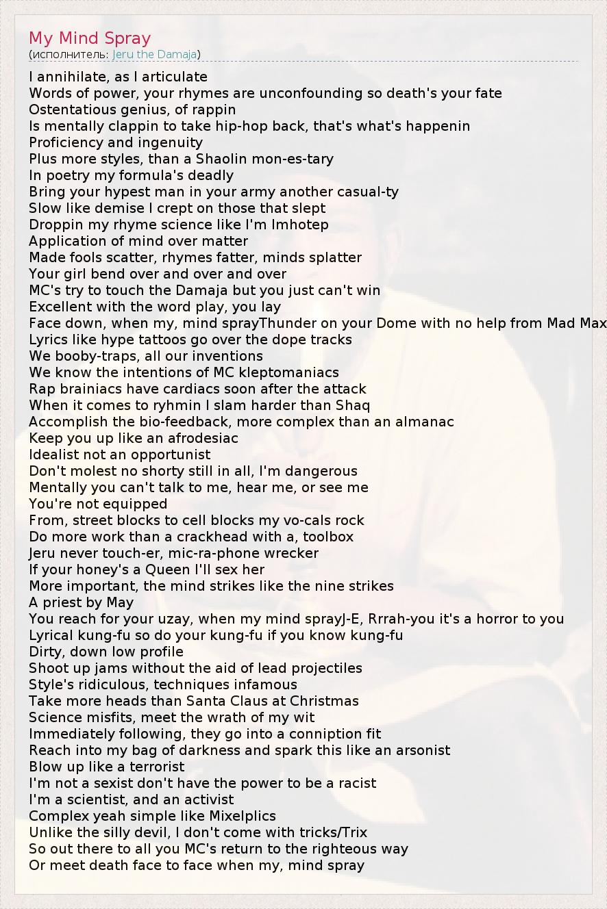 А как ты думаешь, о чем песня "My Mind Spray" ?