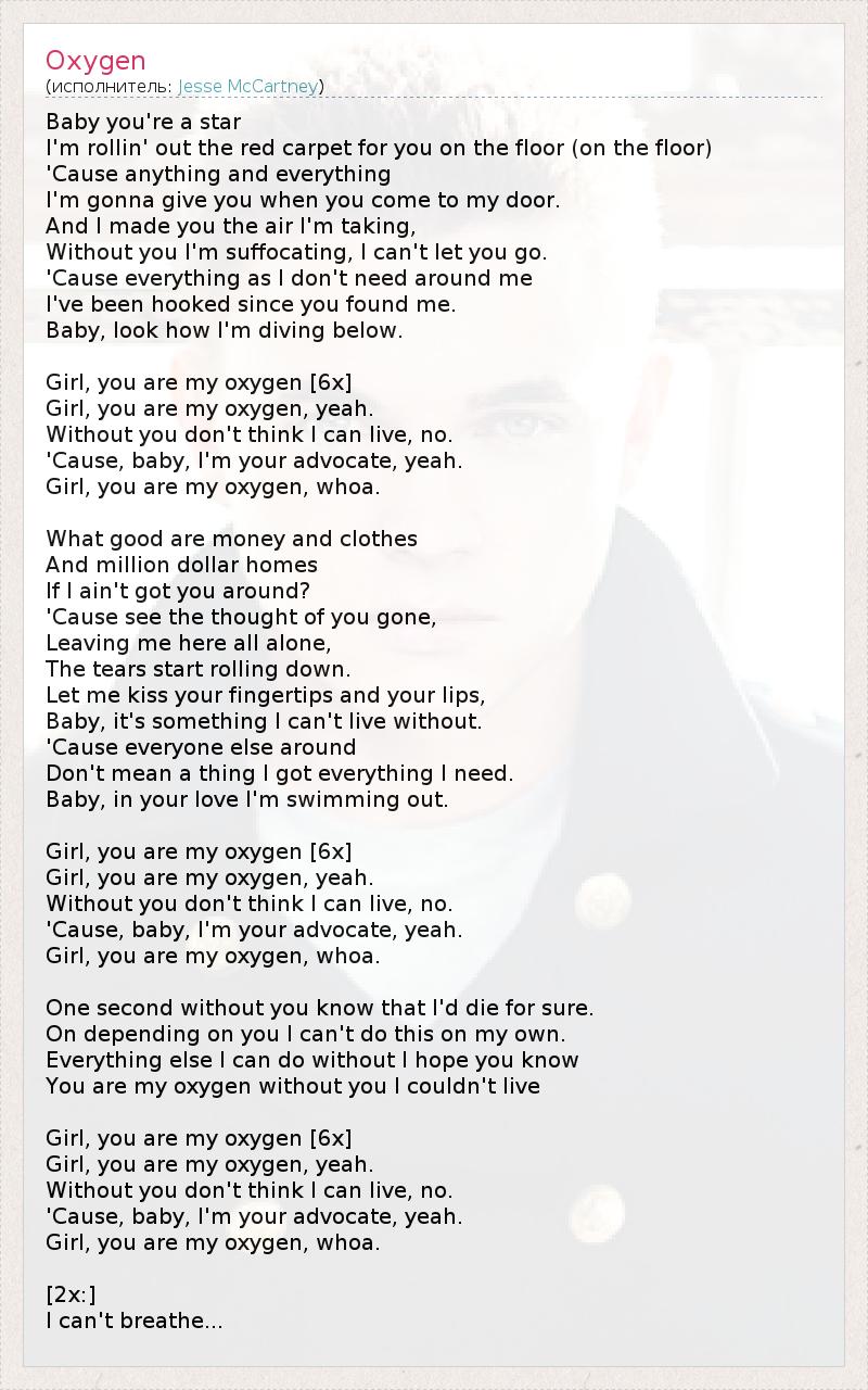 Ведь ты мой кислород, без тебя я не смогу жить.