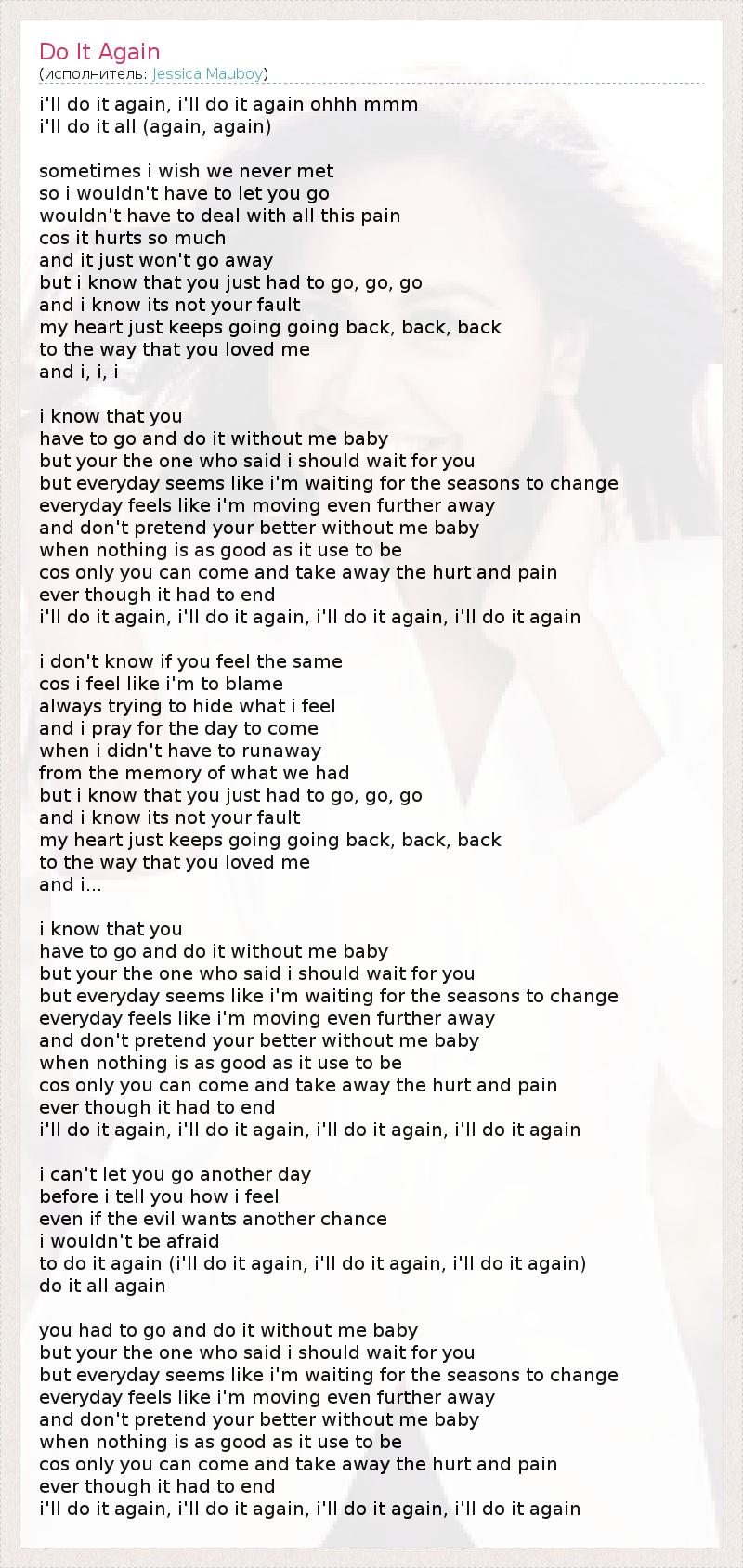 i'll do it again, i'll do it again, i'll do it again, i'll do it again