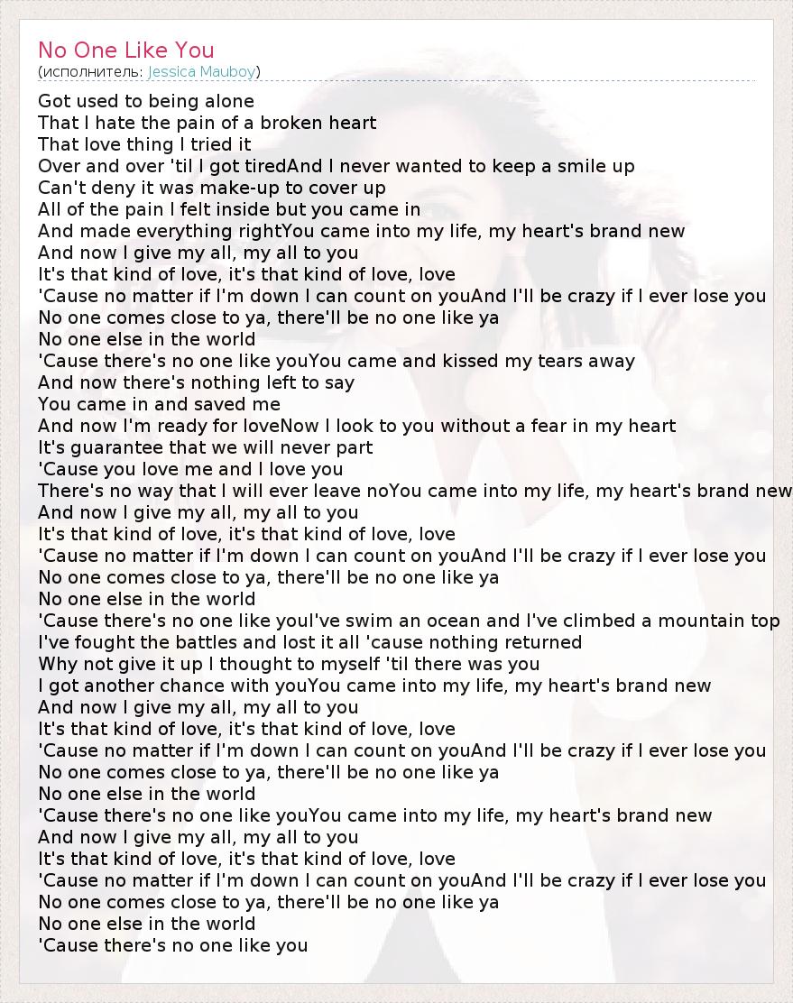 А как ты думаешь, о чем песня "No One Like You" ?