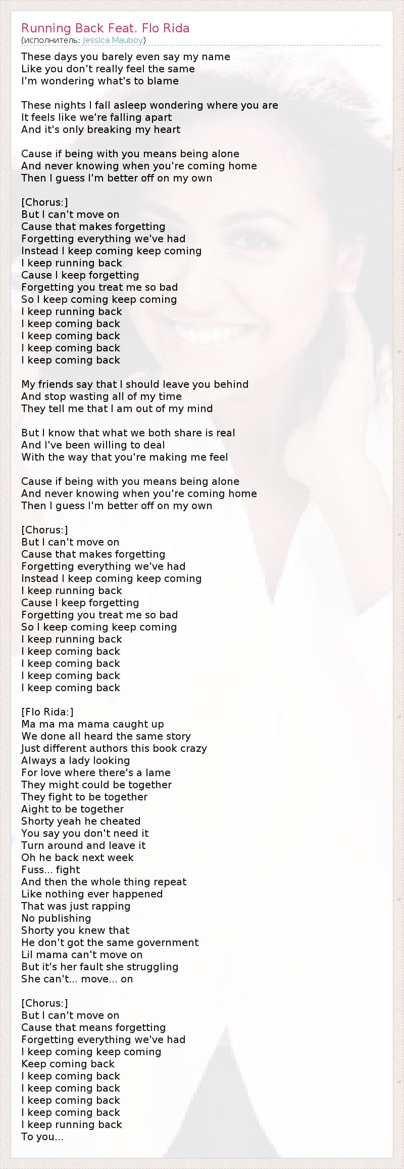 ГлавнаяИсполнителиJessica MauboyRunning Back Feat. Flo Rida