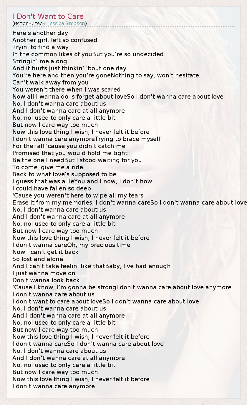 А как ты думаешь, о чем песня "I Don't Want to Care" ?