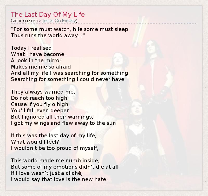 А как ты думаешь, о чем песня "The Last Day Of My Life" ?