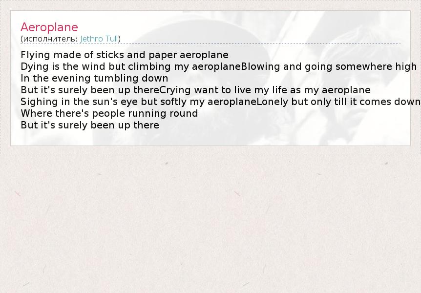А как ты думаешь, о чем песня "Aeroplane" ?