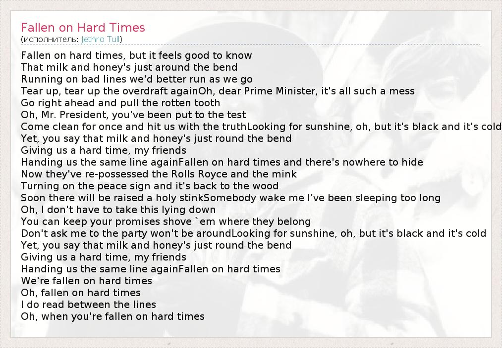 А как ты думаешь, о чем песня "Fallen on Hard Times" ?