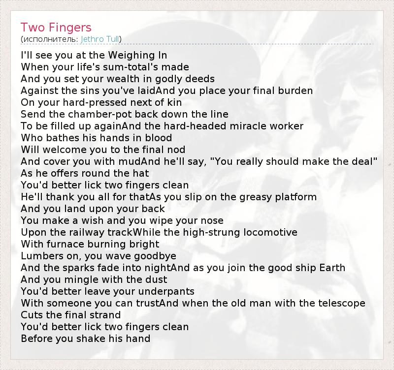 А как ты думаешь, о чем песня "Two Fingers" ?