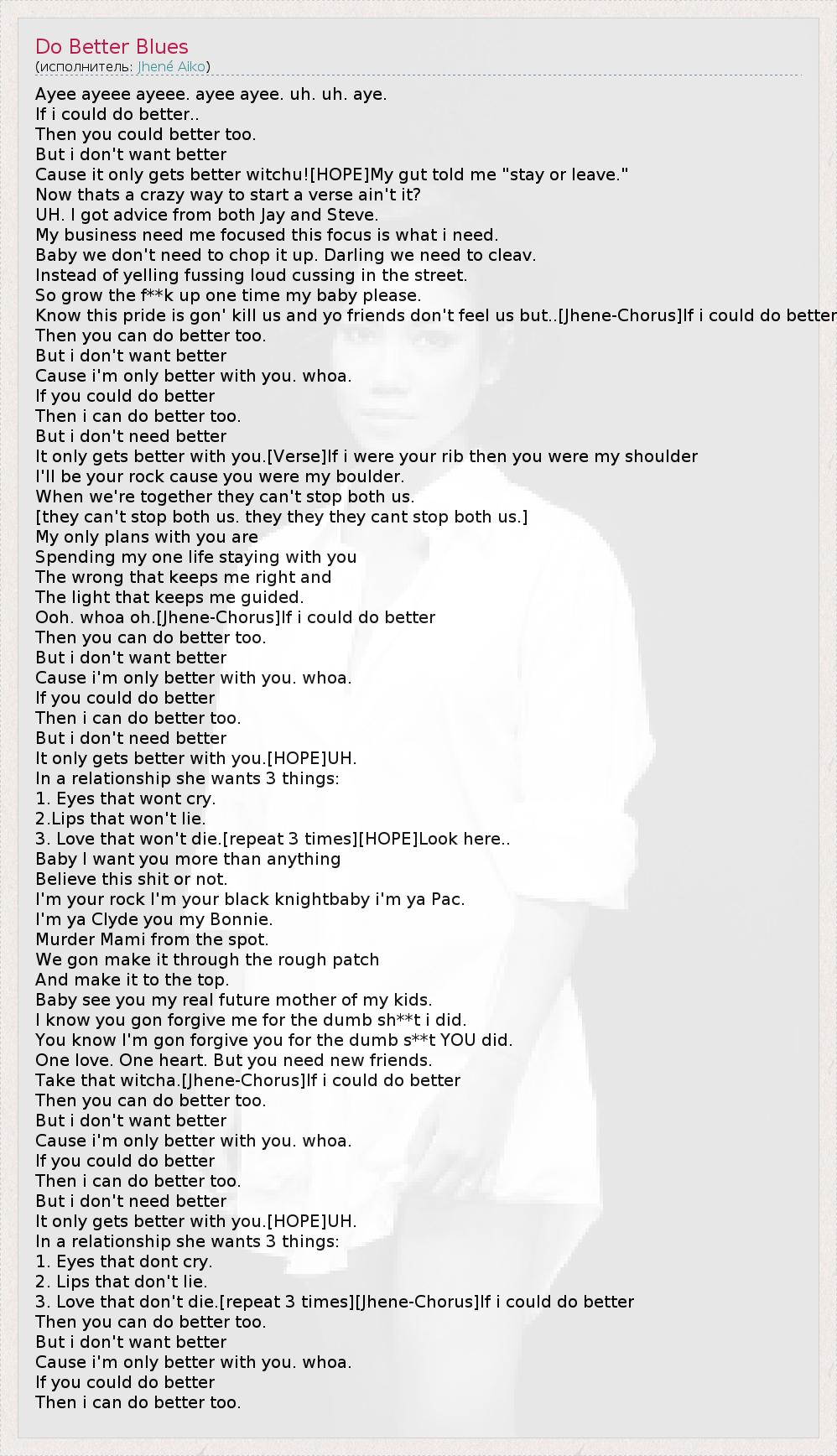 Ooh. whoa oh.[Jhene-Chorus]If i could do better