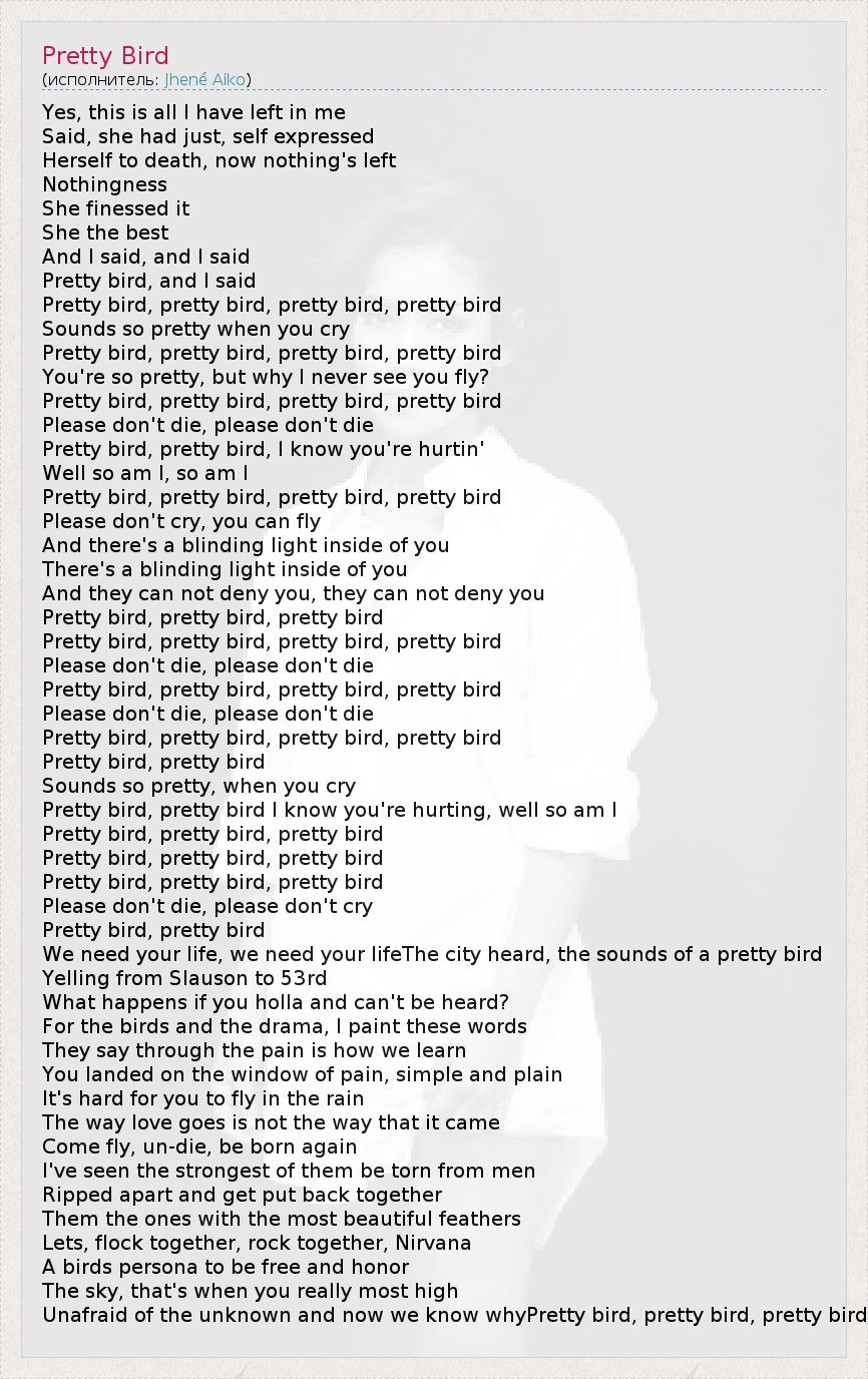 А как ты думаешь, о чем песня "Pretty Bird" ?