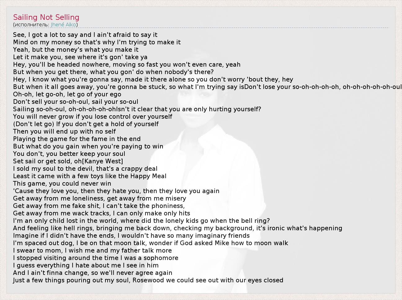 А как ты думаешь, о чем песня "Sailing Not Selling" ?
