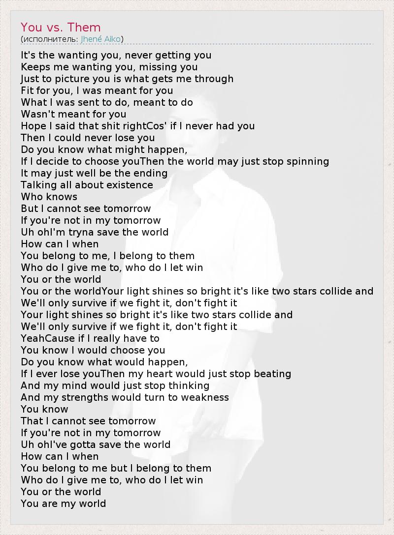А как ты думаешь, о чем песня "You vs. Them" ?