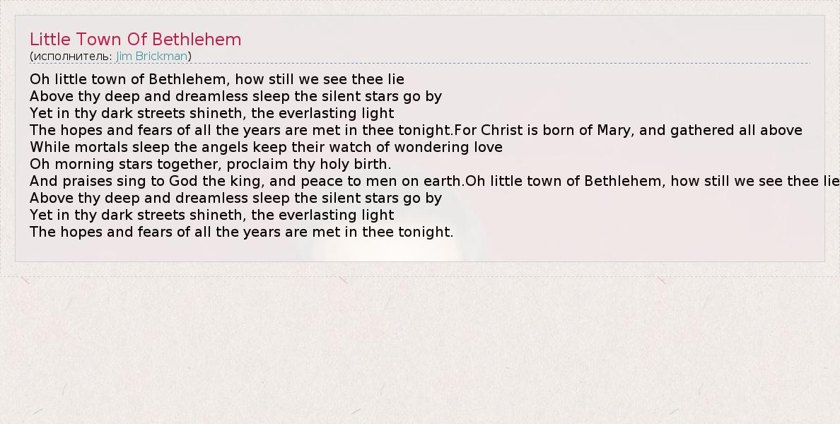 А как ты думаешь, о чем песня "Little Town Of Bethlehem" ?