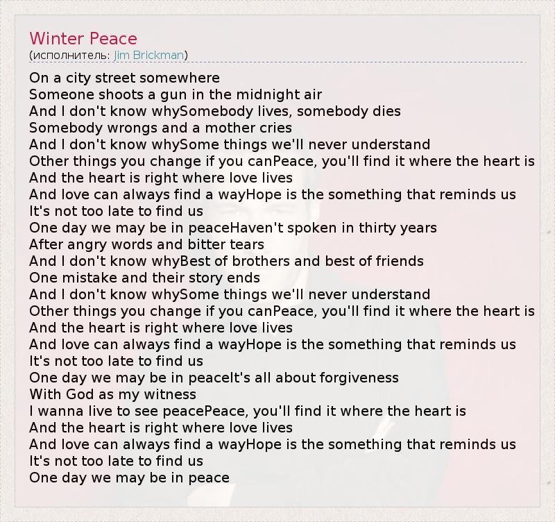 А как ты думаешь, о чем песня "Winter Peace" ?