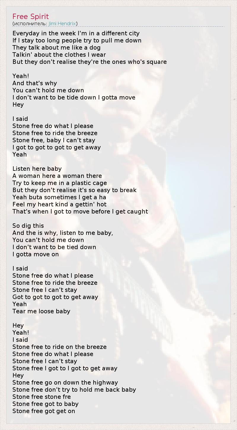 А как ты думаешь, о чем песня "Free Spirit" ?