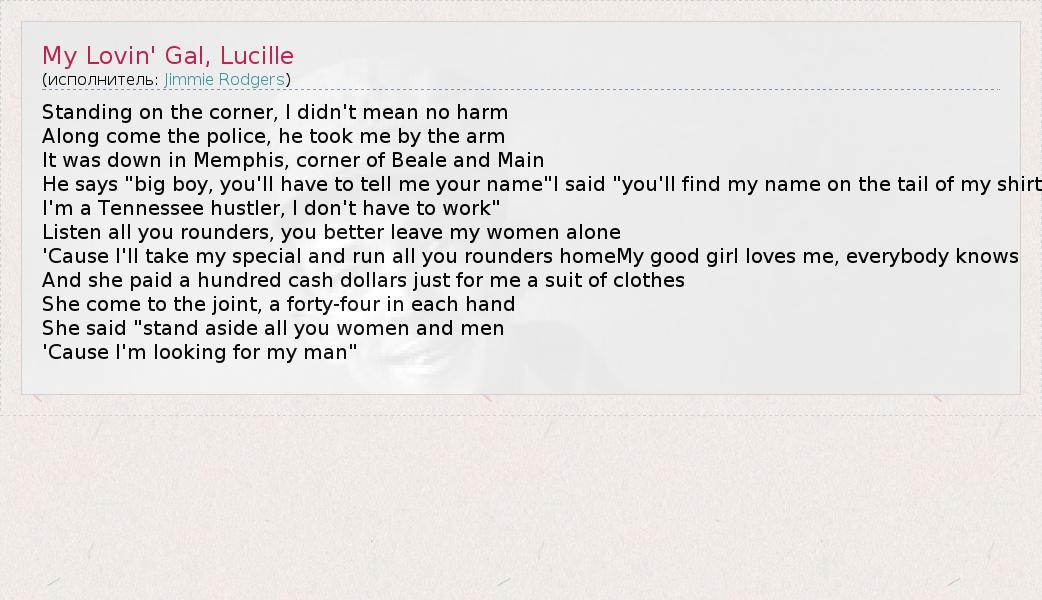 А как ты думаешь, о чем песня "My Lovin' Gal, Lucille" ?