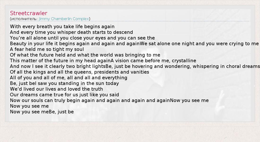 А как ты думаешь, о чем песня "Streetcrawler" ?