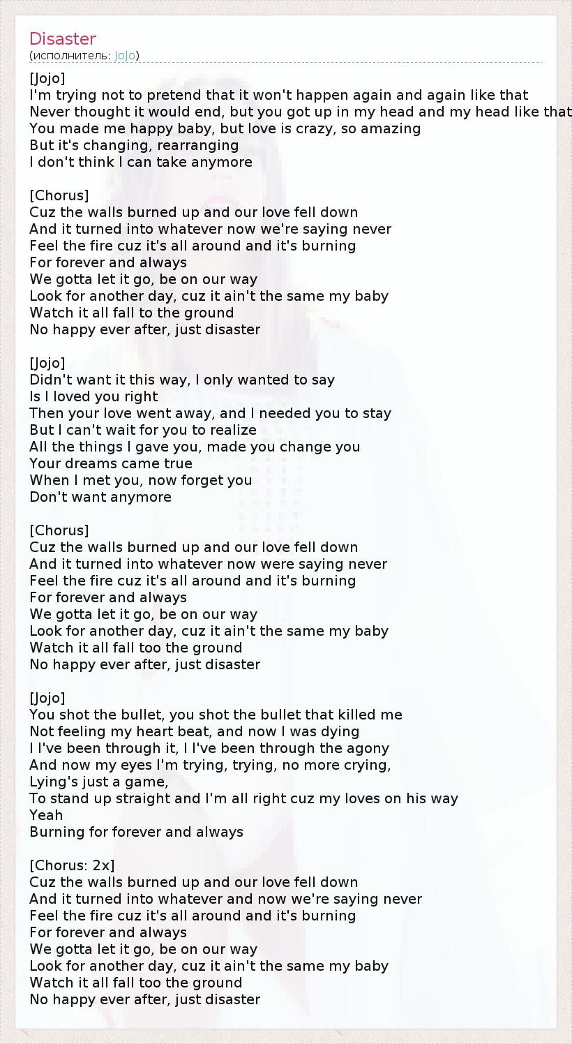 А как ты думаешь, о чем песня "Disaster" ?