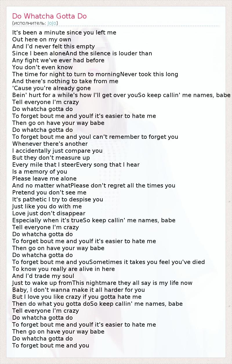 А как ты думаешь, о чем песня "Do Whatcha Gotta Do" ?