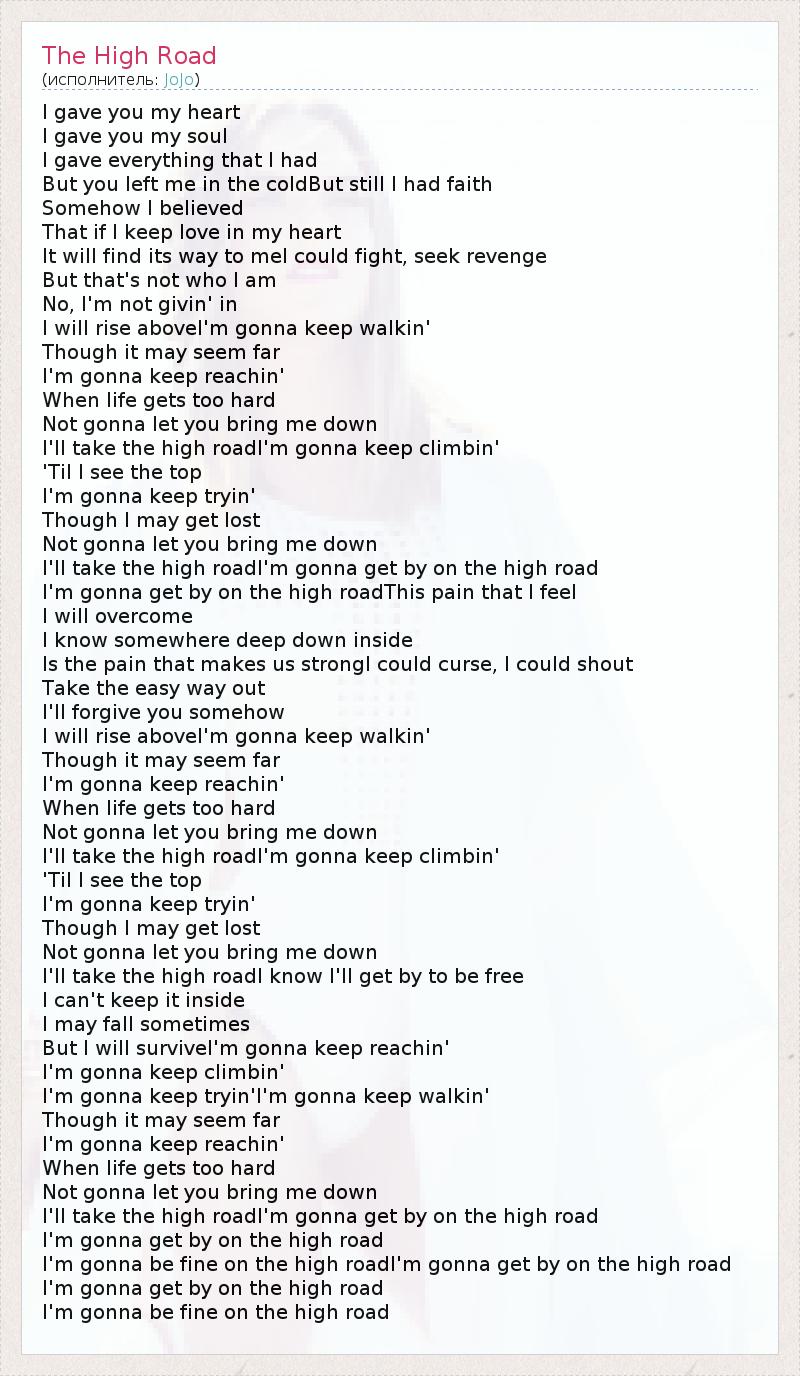 I'm gonna be fine on the high roadI'm gonna get by on the high road