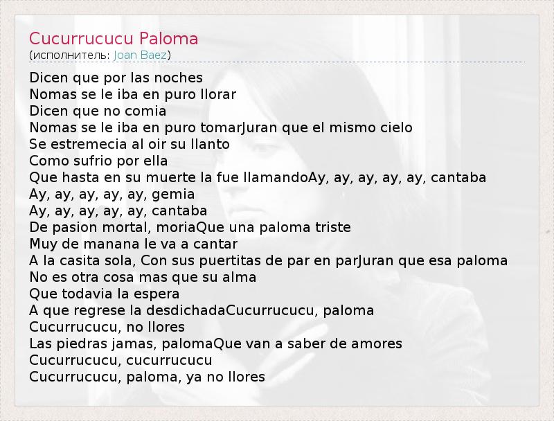 А как ты думаешь, о чем песня "Cucurrucucu Paloma" ?