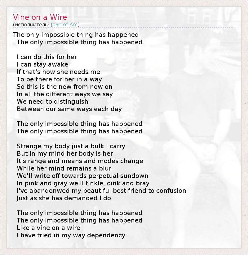 А как ты думаешь, о чем песня "Vine on a Wire" ?