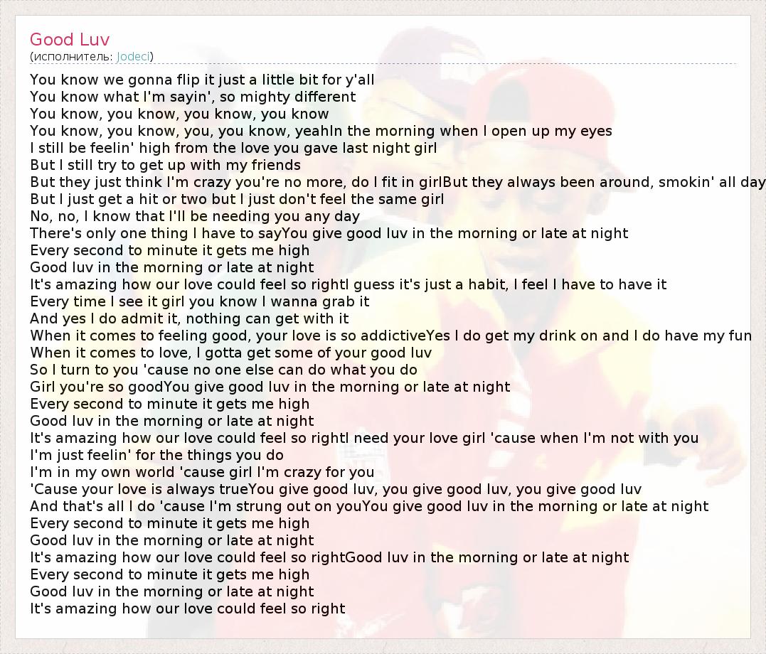It's amazing how our love could feel so rightGood luv in the morning or late at night