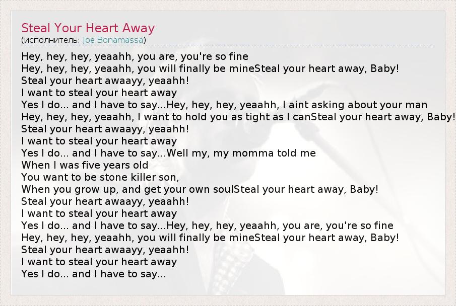 А как ты думаешь, о чем песня "Steal Your Heart Away" ?