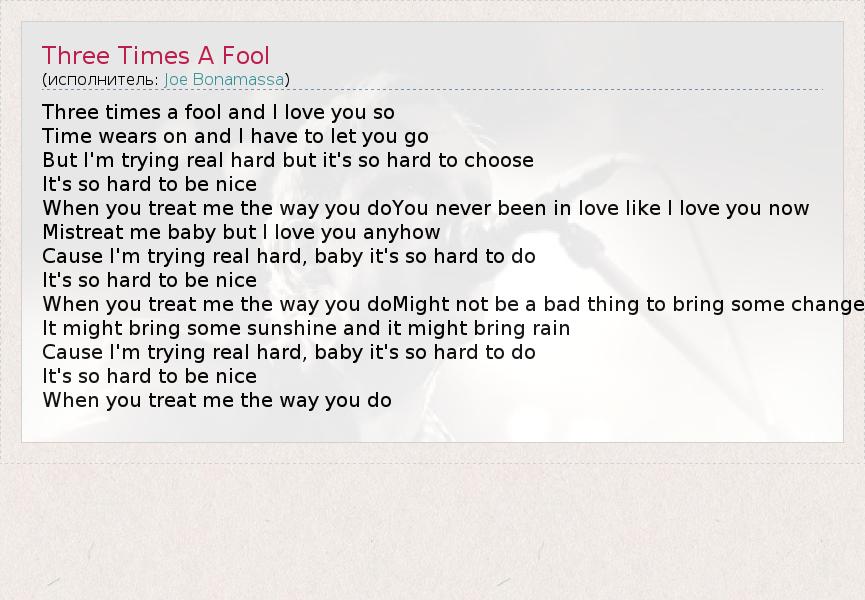 А как ты думаешь, о чем песня "Three Times A Fool" ?