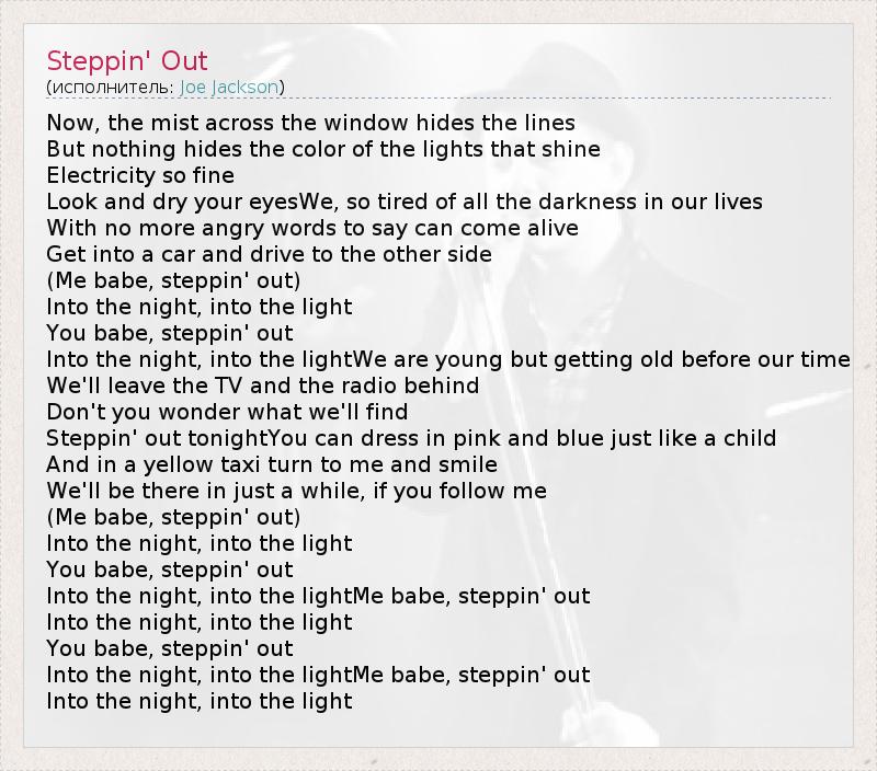 А как ты думаешь, о чем песня "Steppin' Out" ?