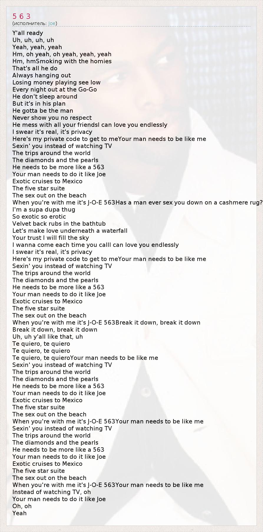 When you're with me it's J-O-E 563Your man needs to be like me