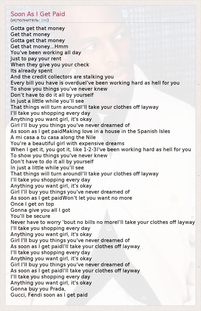 А как ты думаешь, о чем песня "Soon As I Get Paid" ?