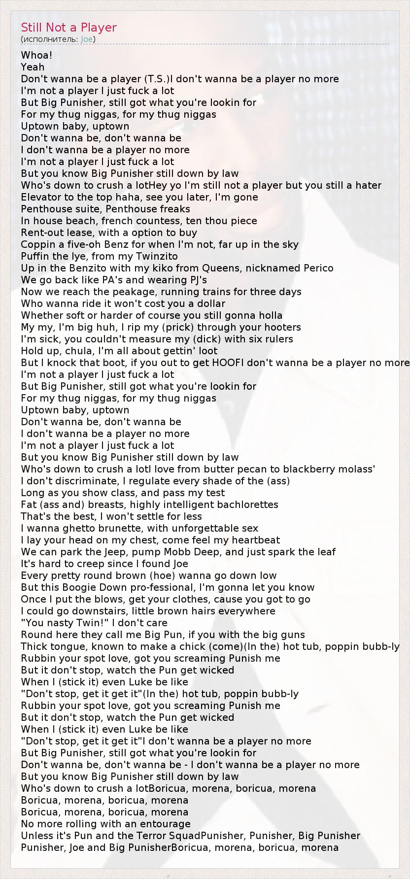 А как ты думаешь, о чем песня "Still Not a Player" ?