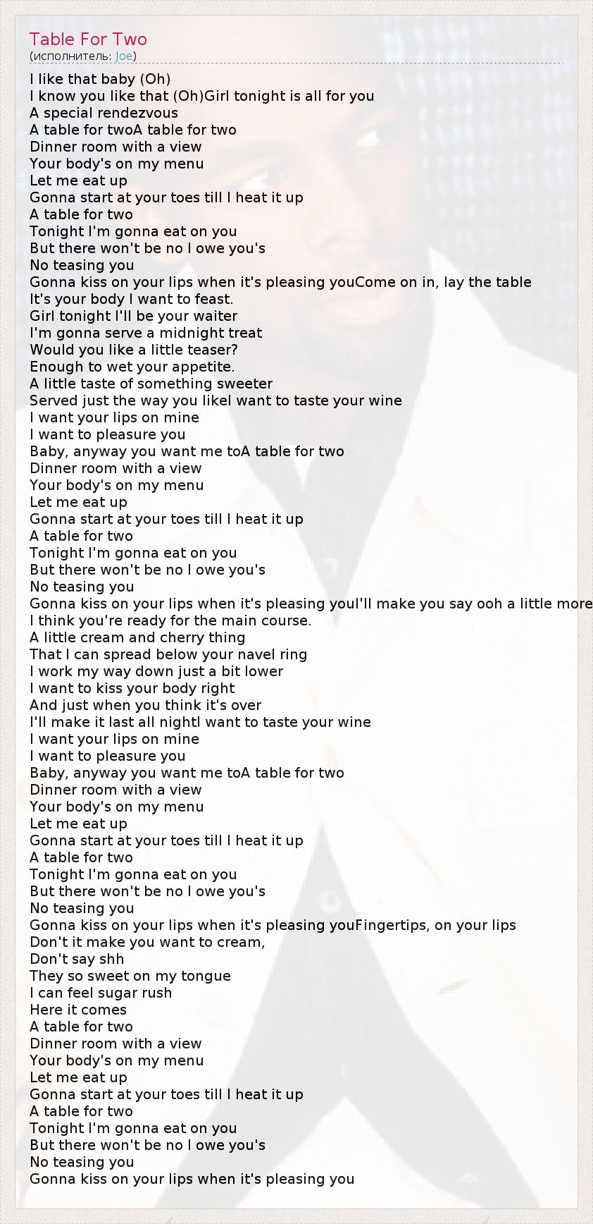 Gonna kiss on your lips when it's pleasing youCome on in, lay the table