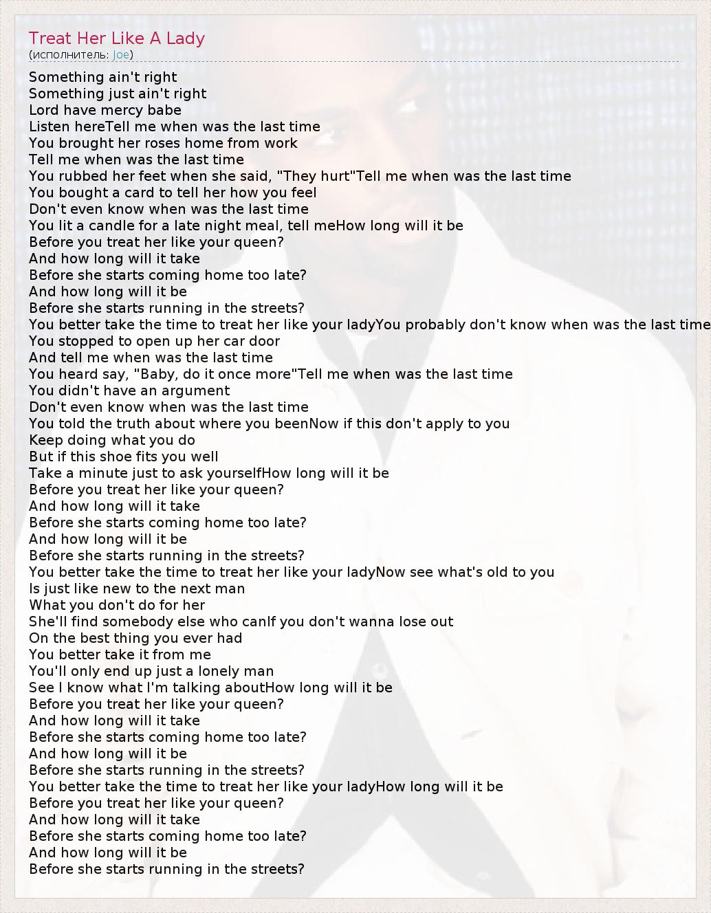 А как ты думаешь, о чем песня "Treat Her Like A Lady" ?