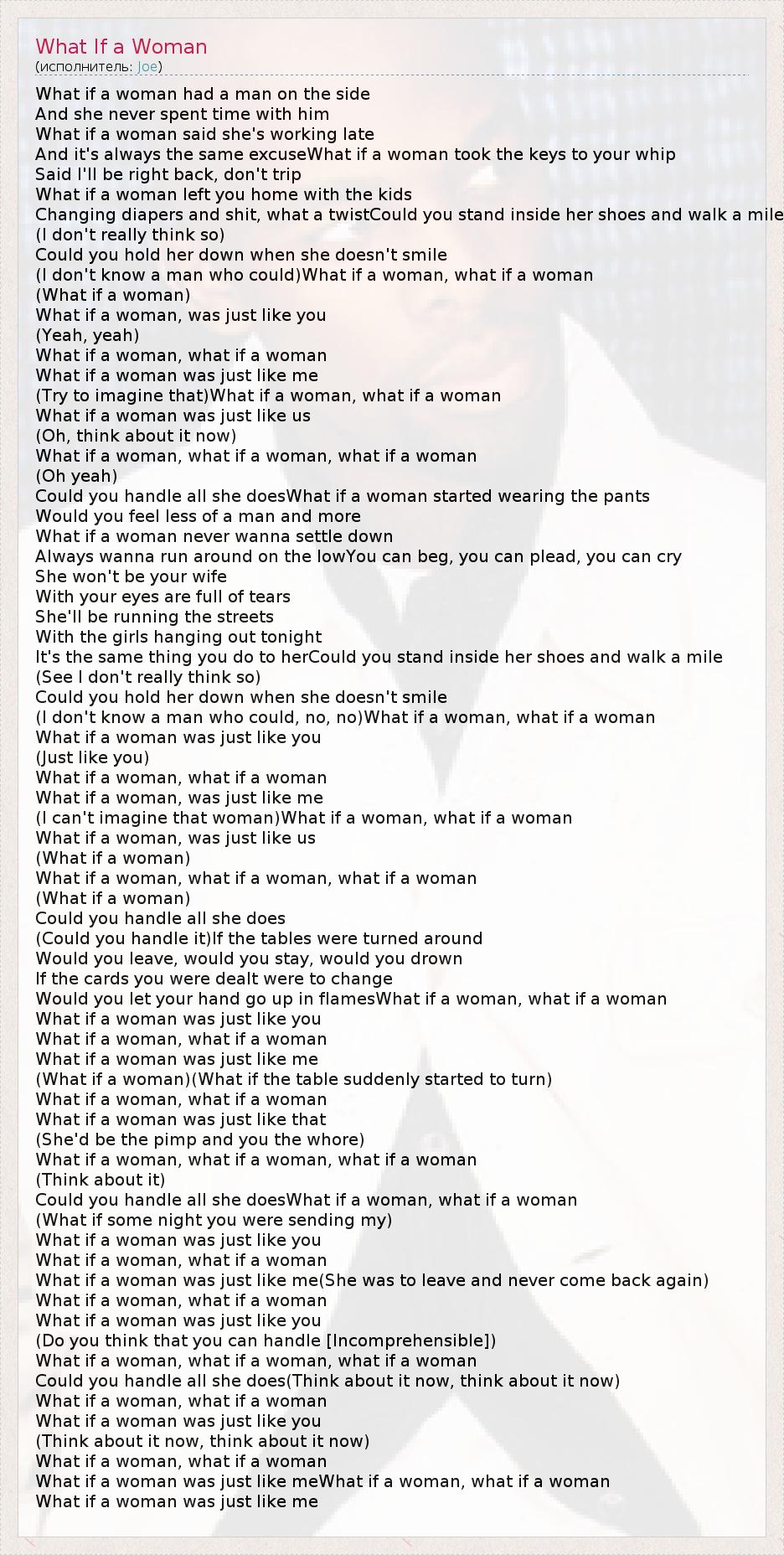 А как ты думаешь, о чем песня "What If a Woman" ?